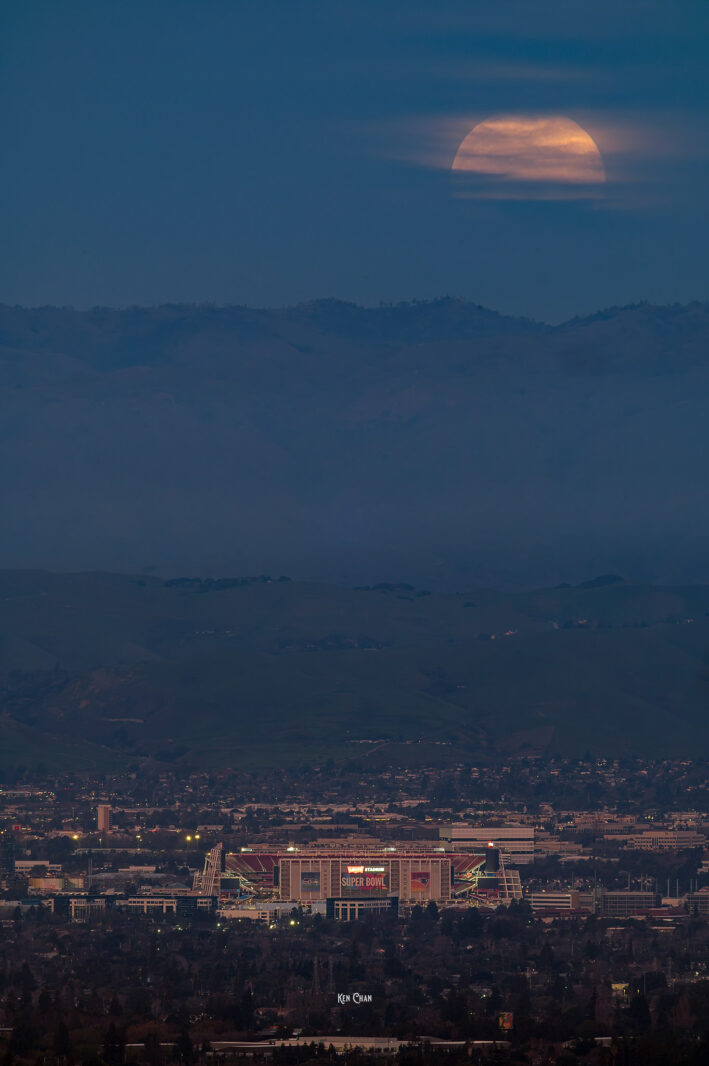 I’d been envisioning a moonrise behind Levi’s Stadium for some time. When the opportunity finally came, I hiked a new trail to chase the alignment. It didn’t work out exactly as planned in PlanIt Pro, but I was able to find a higher-elevation vantage point along the same axis, where I captured this image.